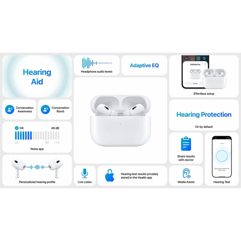 Плюс, благодаря улучшенному режиму шумоподавления и режиму прозрачности, AirPods Pro 2 создают комфортное аудиоокружение и позволяют вам создать собственный звуковой профиль, сканируя вашу голову с помощью датчика True Depth.